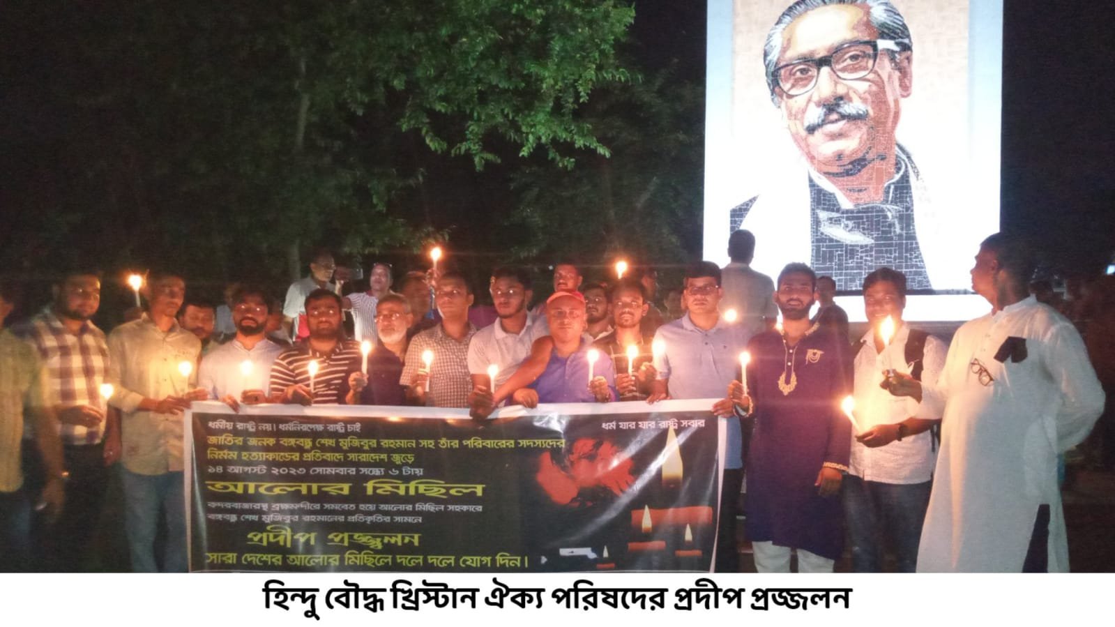 বঙ্গবন্ধুর ৪৮ তম শাহাদাত বার্ষিকী উপলক্ষে হিন্দু বৌদ্ধ খ্রিস্টান ঐক্য পরিষদের প্রদীপ প্রজ্জ্বলন ও আলোর মিছিল