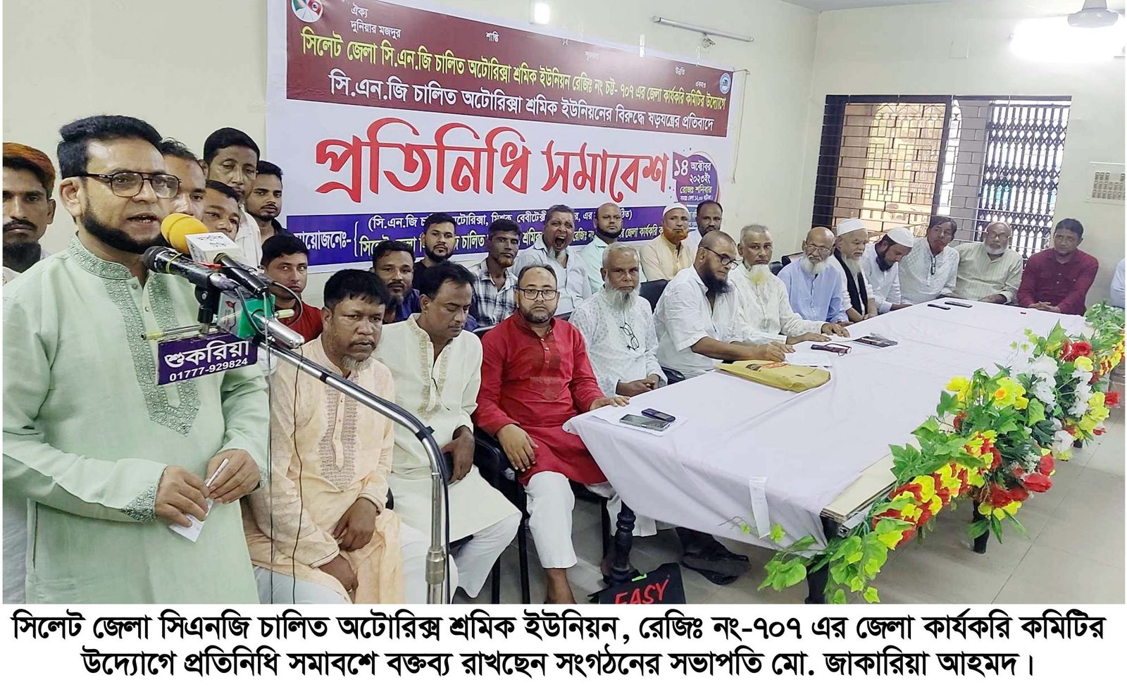 সিলেট জেলা সিএনজি চালিত অটোরিক্সা শ্রমিক ইউনিয়ন, রেজিঃ নং-৭০৭ এর জেলা কার্যকরি কমিটির উদ্যোগে প্রতিনিধি সমাবশে অনুষ্ঠিত হয়েছে। আজ শনিবার