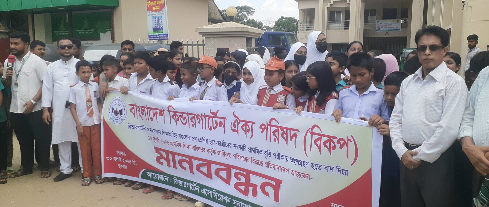 জগন্নাথপুরে কিন্ডারগার্টেন এসোসিয়েশনের মানববন্ধন, স্মারকলিপি প্রদান