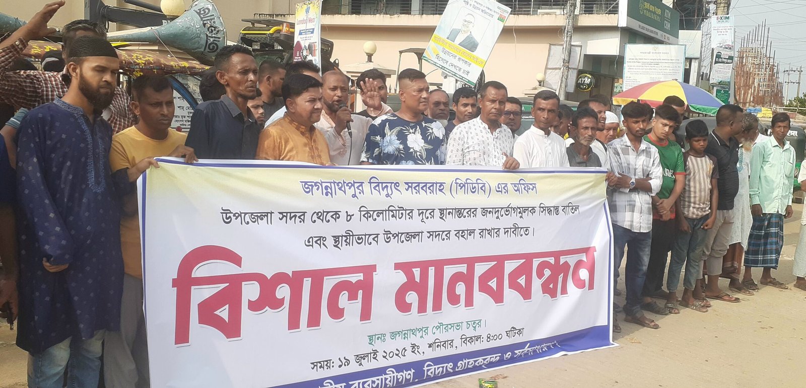 জগন্নাথপুরে বিদ্যুৎ অফিস স্থানান্তরের সিদ্ধান্ত বাতিলের দাবীতে মানববন্ধন