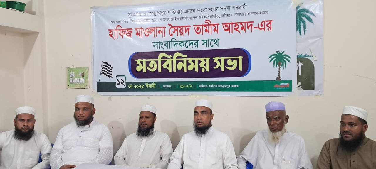 জগন্নাথপুরে সাংবাদিকদের সাথে সম্ভাব্য সংসদ সদস্য প্রার্থী মাওলানা সৈয়দ তামীম আহমদের মতবিনিময়
