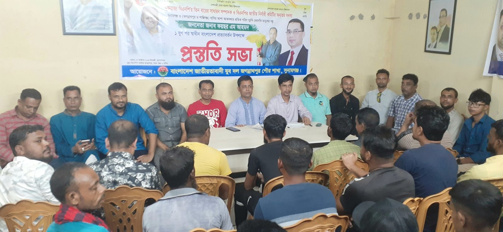 কয়ছর এম আহমেদের স্বদেশ প্রত্যাবর্তন উপলক্ষে জগন্নাথপুর পৌর যুবদলের প্রস্তুতি সভা