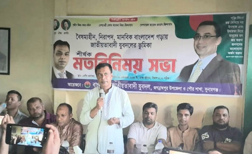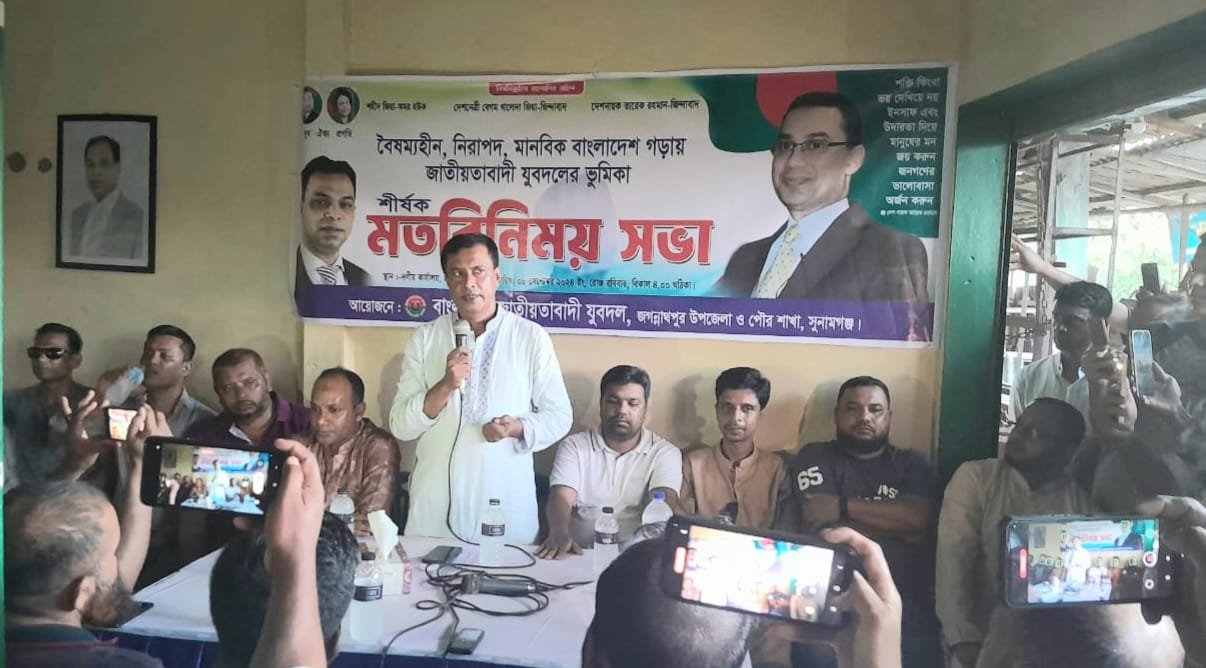 বাংলাদেশ জাতিয়তাবাদী যুবদল, জগন্নাথপুর উপজেলা ও পৌর শাখার আয়োজনে বৈষম্য, নিরাপদ, মানবিক বাংলাদেশ গড়াও জাতীয়তাবাদী যুবদলের শীর্ষক মতবিনিময় সভা অনুষ্ঠিত