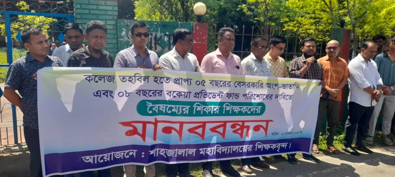 স্টাফ রিপোর্ট ঃ জগন্নাথপুর উপজেলার কলকলিয়া ইউনিয়নের শাহজালাল মহাবিদ্যালয়ের প্রভাষকদের বকেয়া ৫ বছরের বেসরকারি অংশ ভাতাদি ও ৮ বছরের প্রভিডেন্ট ফান্ড
