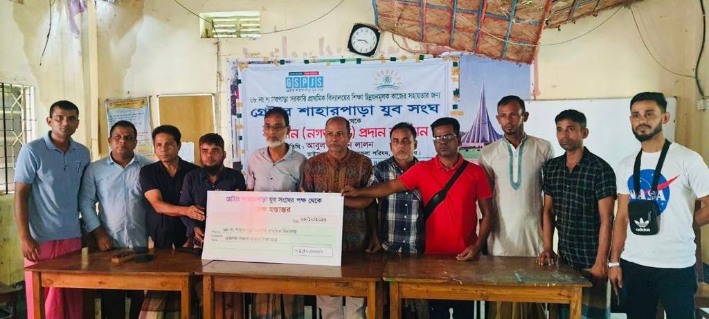 গ্রেটার শাহার পাড়া যুব সংঘের পক্ষ থেকে শাহার পাড়া সরকারি প্রাথমিক বিদ্যালয়ে শিক্ষার উন্নয়নে ১ লক্ষ ৫০ হাজার টাকা অনুদান
