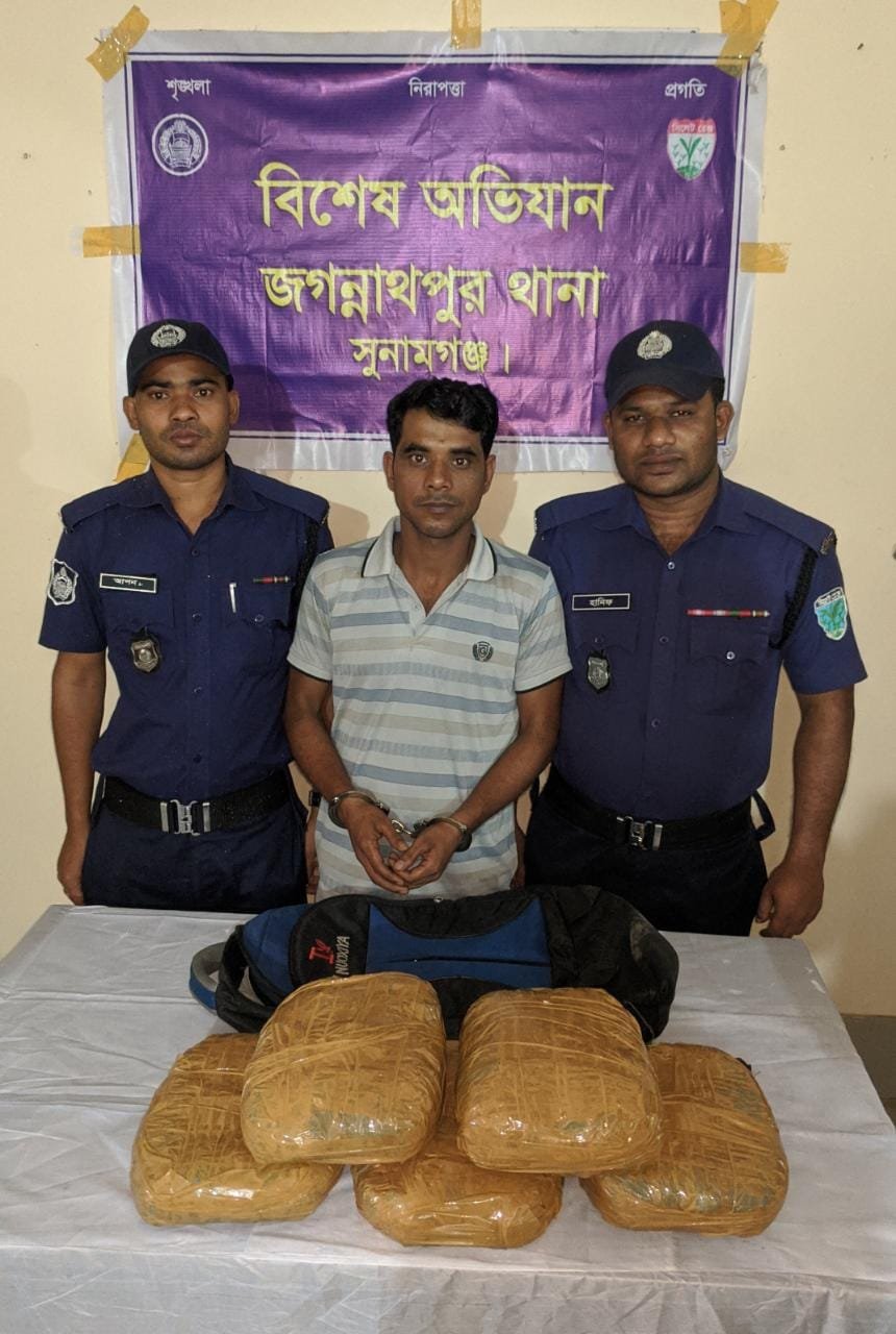 স্টাফ রিপোর্ট ঃ জগন্নাথপুর থানা পুলিশ ৫ কেজি গাঁজাসহ রাসেল মিয়াকে (৩৩) গ্রেপ্তার করেছে। গ্রেফতার কৃত রাসেল মিয়া সুনামগঞ্জ জেলার