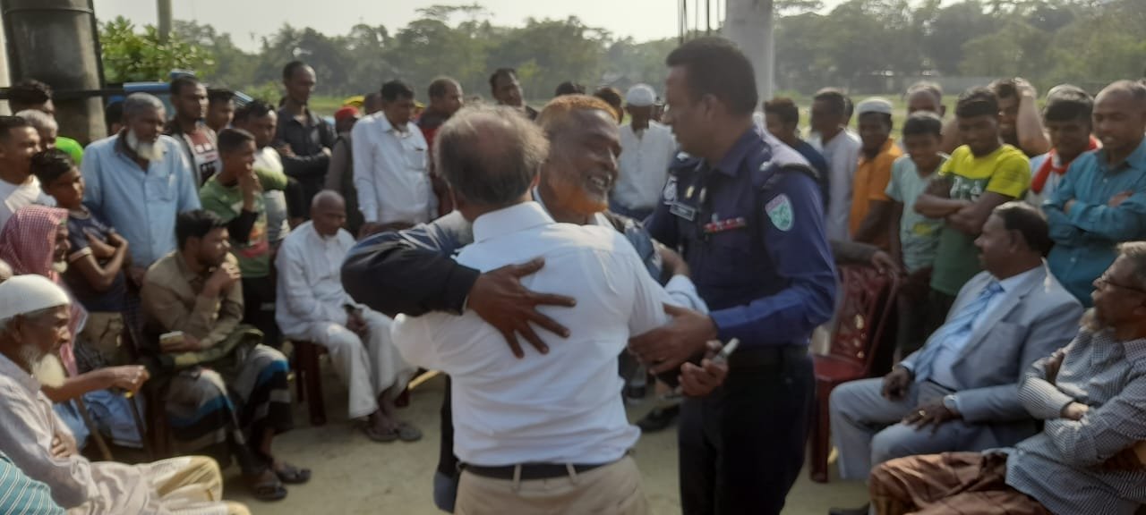 জগন্নাথপুর থানার অফিসার ইনচার্জ মিজানুর রহমান কর্তৃক দুই পক্ষের বিরোধ নিস্পত্তি