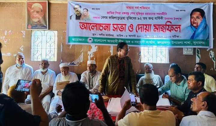 জগন্নাথপুরে আওয়ামী লীগ সহযোগি সংগঠনের উদ্যোগে বঙ্গবন্ধুর ৪৭তম শাহাদত বার্ষিকী ও জাতীয় শোক দিবস উদযাপন