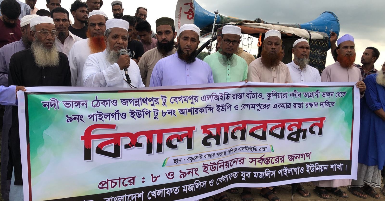 জগন্নাথপুর – বেগমপুর রাস্তা নদী ভাঙ্গন থেকে রক্ষার দাবীতে বিশাল মানববন্ধন