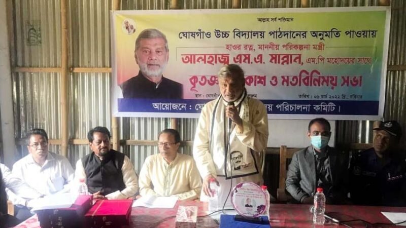 ঘোষগাঁও উচ্চ বিদ্যালয়ের পাঠদানের অনুমতি পাওয়ায় বিদ্যালয় পরিচালনা কমিটি কর্তৃক পরিকল্পনামন্ত্রী এম এ মান্নানকে কৃতজ্ঞতা জানান এলাকাবাসী।