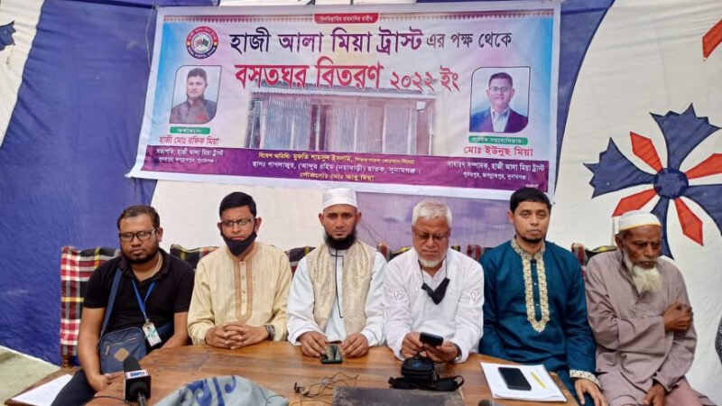 এরই অংশ হিসাবে সুনামগঞ্জ জেলার ছাতক উপজেলার গাগলাজুর গ্রামের কৃষক মো: আব্দুর রউফকে তার বসতঘর নির্মান করে দিয়েছেন। হাজী আলা মিয়া ট্রাস্টের সভাপতি আলহাজ্ব মো: রফিক মিয়ার অর্থায়নে এবং হাজী আলা মিয়া ট্রাস্টের সাধারন সম্পাদক মো: ইউনুছ মিয়ার সার্বিক ব্যবস্থাপনায় এই গৃহ নির্মান করা হয়। ঘর হস্তান্তর উপলক্ষে আজ মঙ্গলবার ( ৮ মার্চ) ছাতক উপজেলার গাগলাজুর গ্রামে আলোচনা সভা অনুষ্ঠিত হয় ।