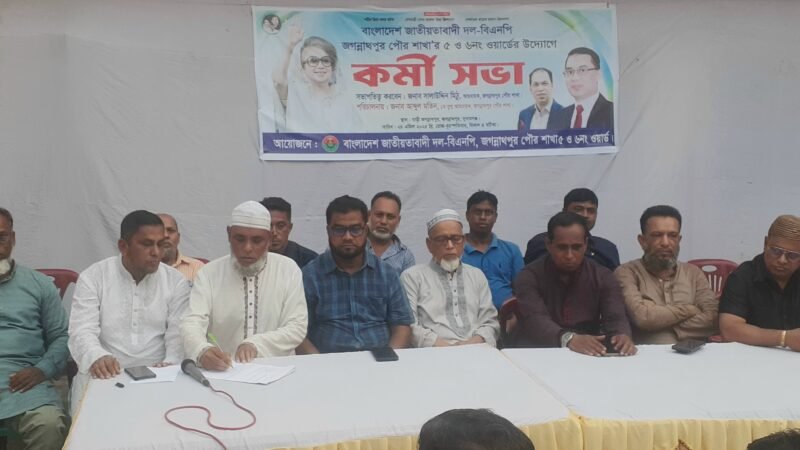 বাংলাদেশ জাতীয়তাবাদী দল বিএনপি জগন্নাথপুর পৌর সভার ৫ ও ৬ নাম্বার ওয়ার্ডের উদ্যােগে কর্মী সভা অনুষ্ঠিত হয়েছে। গত বৃহস্পতিবার বিকেল ৪টায় বাড়ি জগন্নাথপুর এলাকায় আয়োজিত কর্মী সভায় প্রধান অতিথির বক্তব্য রাখেন উপজেলা বিএনপির আহবায়ক আবু হুরায়রা সাদ মাষ্টার।