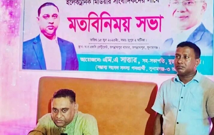 রবিবার (১৫ জুন) বিকাল ৩টায় জগন্নাথপুর পৌর শহরের টিএন্ডটি রোডস্থ আরএফসি রেষ্টুরেন্টে সাংবাদিকদের সাথে মতবিনিময় কালে তিনি উপরোক্ত কথাগুলো বলেছেন।