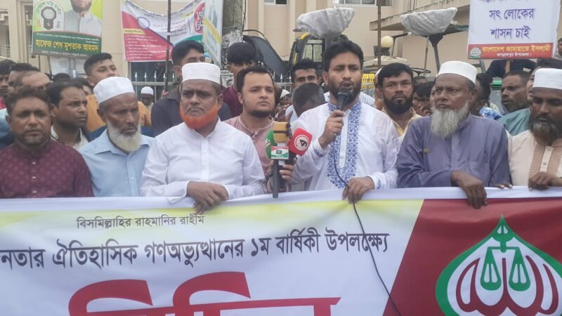 সুনামগঞ্জের জগন্নাথপুরে জুলাই গণঅভ্যুত্থানের বর্ষপূর্তি উদযাপন উপলক্ষে বাংলাদেশ জামায়াতে ইসলামী উপজেলা শাখার উদ্যোগে মঙ্গলবার (৫ আগস্ট) গণ মিছিলসমাবেশ অনুষ্ঠিত হয়েছে।