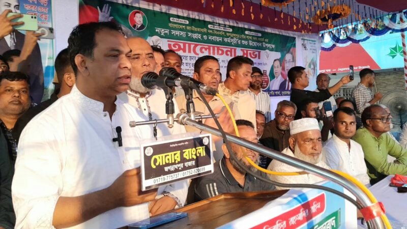 গত মঙ্গলবার বিকেলে সুনামগঞ্জ জেলার জগন্নাথপুর পৌর সভার ৭ নং ওয়ার্ড বিএনপির নতুন সদস্য সংগ্রহ ও পুরাতন সদস্য নবায়ন কার্যক্রম উদ্বোধন শেষে জনসভায় প্রধান অতিথির বক্তব্যে তিনি উপরোক্ত কথাগুলো বলেছেন।