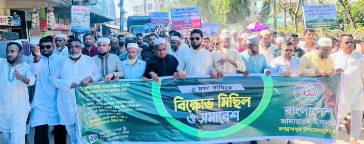 কেন্দ্র ঘোষিত ৫ দফা গণদাবি আদায়ের লক্ষ্যে জগন্নাথপুর উপজেলা জামায়াতের উদ্যোগে বিক্ষোভ মিছিল সমাবেশ অনুষ্ঠিত হয়েছে।